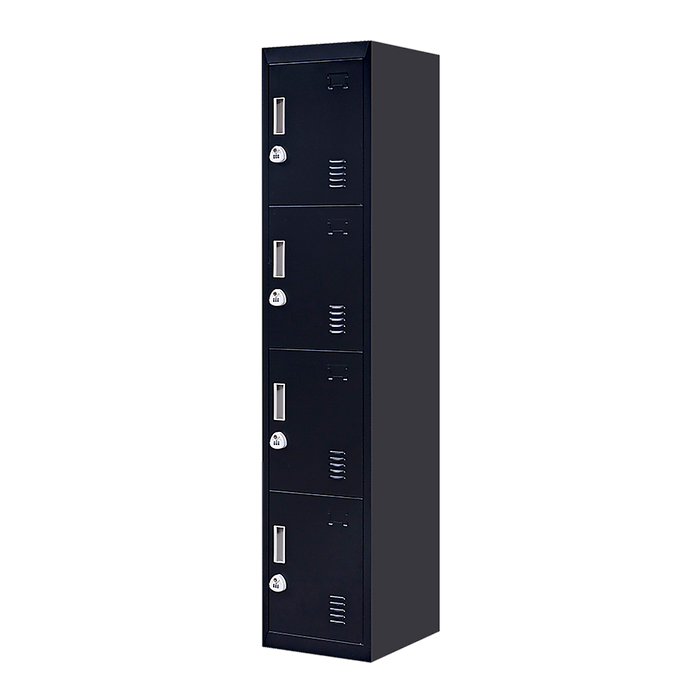 Four vertically-stacked lockers provide a good amount of room for small personal belongings, purses, textbooks, office supplies, and much more. This comes comes with 3-digit combination lock to ensure safety of your items.