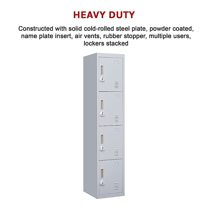 4-Door Vertical Locker for Office Gym Shed School Home Storage - 3-Digit Combination Lock