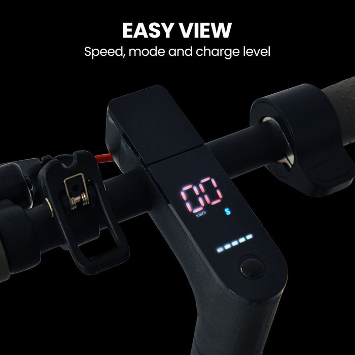 Keep track of your speed, mode, and battery life with the easy-to-read backlit LED display. The EverBrite LED headlight, and brake light, lets you extend your adventures into the evening. When done, simply fold the scooter with a single touch and roll it away effortlessly.