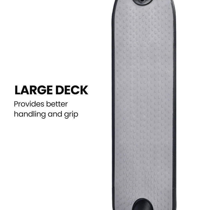 The scooter's design is ideal for adults and teens alike, featuring a long deck for enhanced control. The 8.5-inch airless tyres work seamlessly with the ActivShok suspension system to ensure a smooth ride over any bumps.