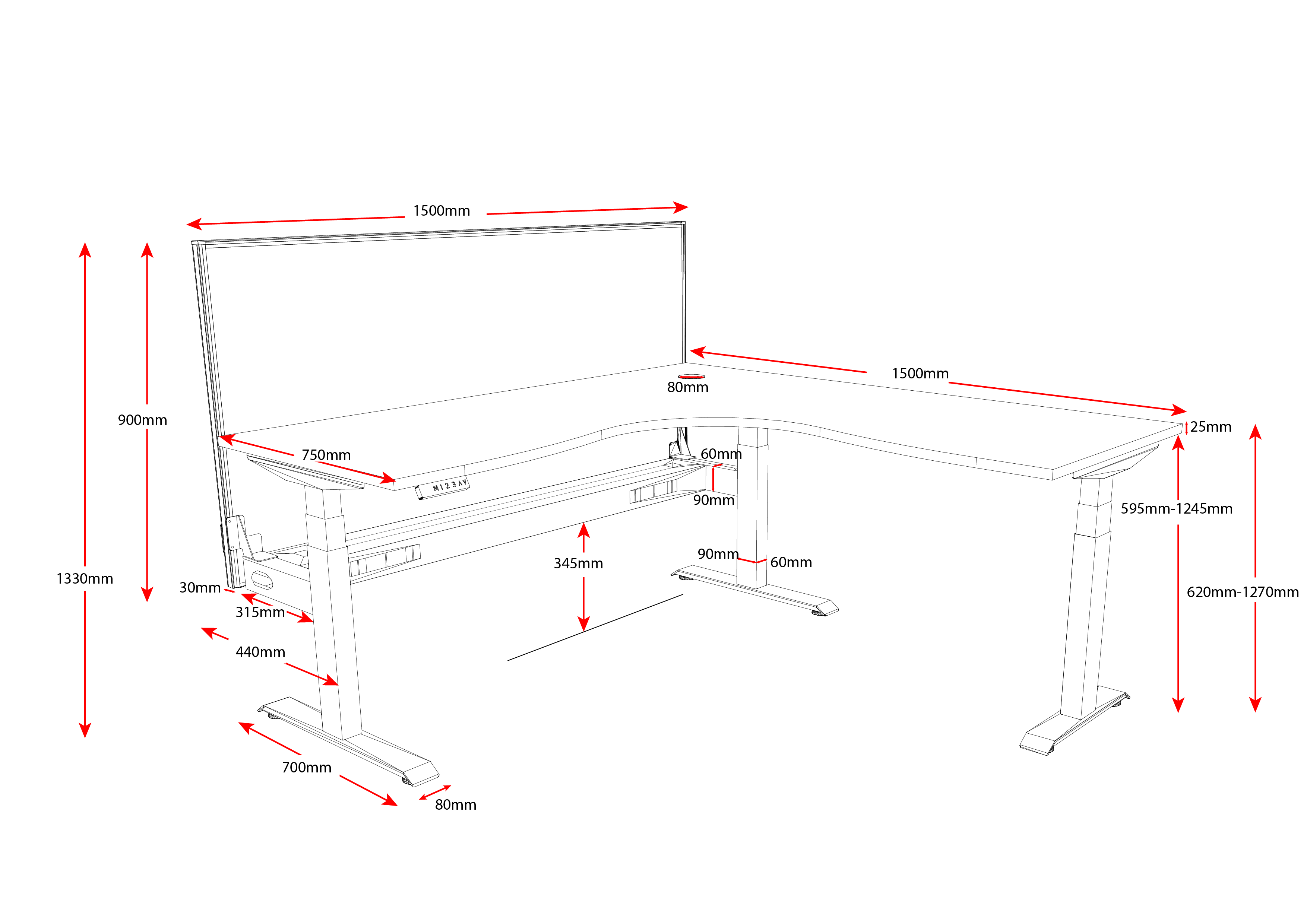 - Optional 900mm H x 30mm T Pinnable Privacy Screen Finished In With Matching Black P/C Extrusion