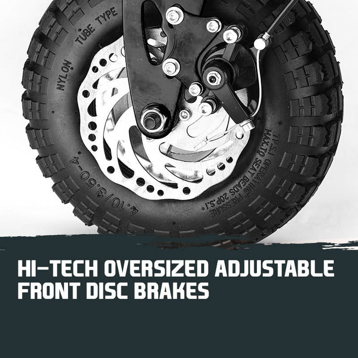 Of course, our boffins paid equal attention to the handling - a high-tensile yet lightweight steel frame houses tough polished steel shocks, massive disc brakes and oversized knobby 10-inch tyres. For those that like to tinker with their toys, youll love how easy it is to tweak the shocks and brakes to your riding style.