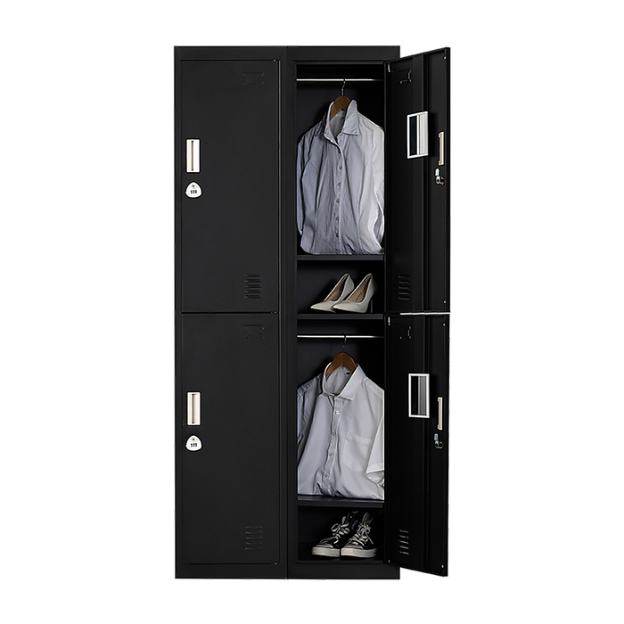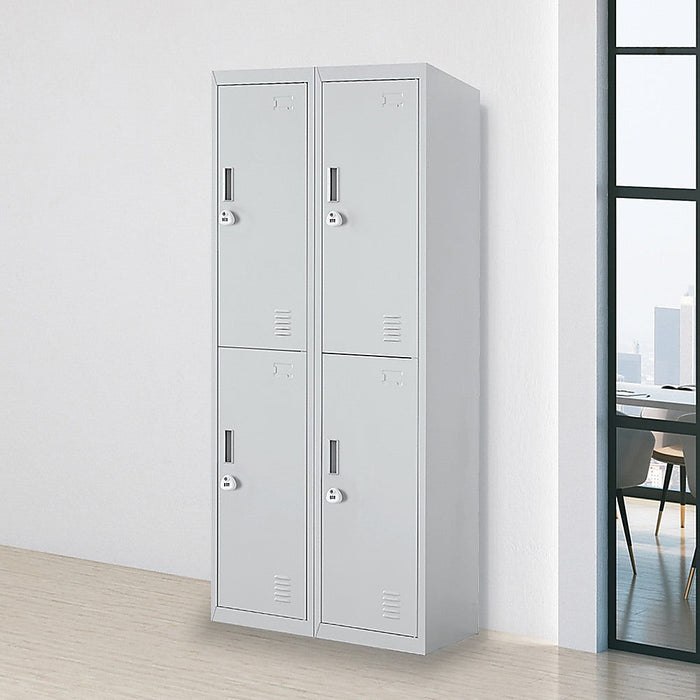 Four spacious lockers are arranged in a compact 2 x 2 grid. They're perfect to store a change of clothes, keep valuables, and store other a variety of personal belongings short-term or long-term.