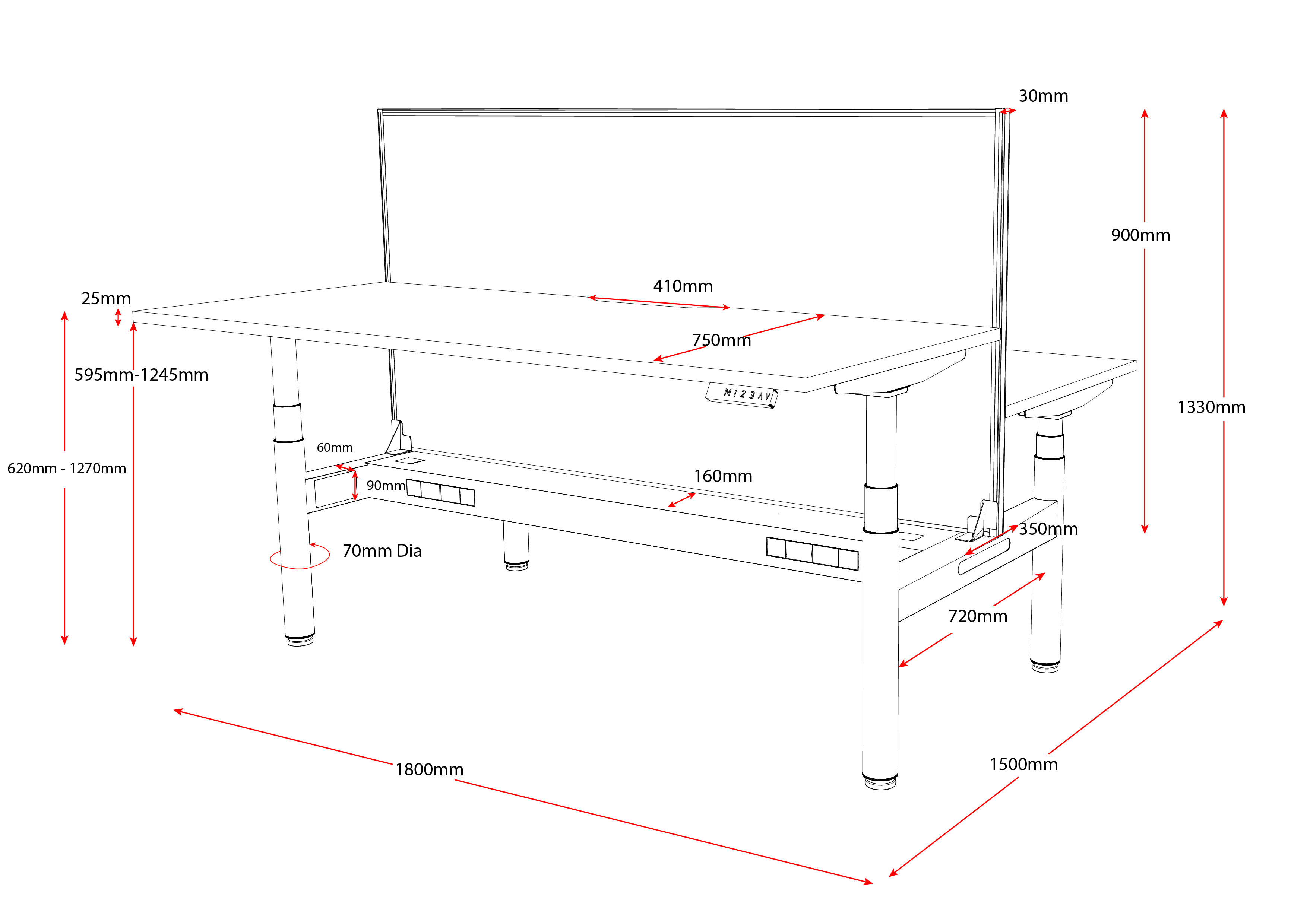 - Halo+ back to back height adjustable workstation frame (FRAME ONLY).
