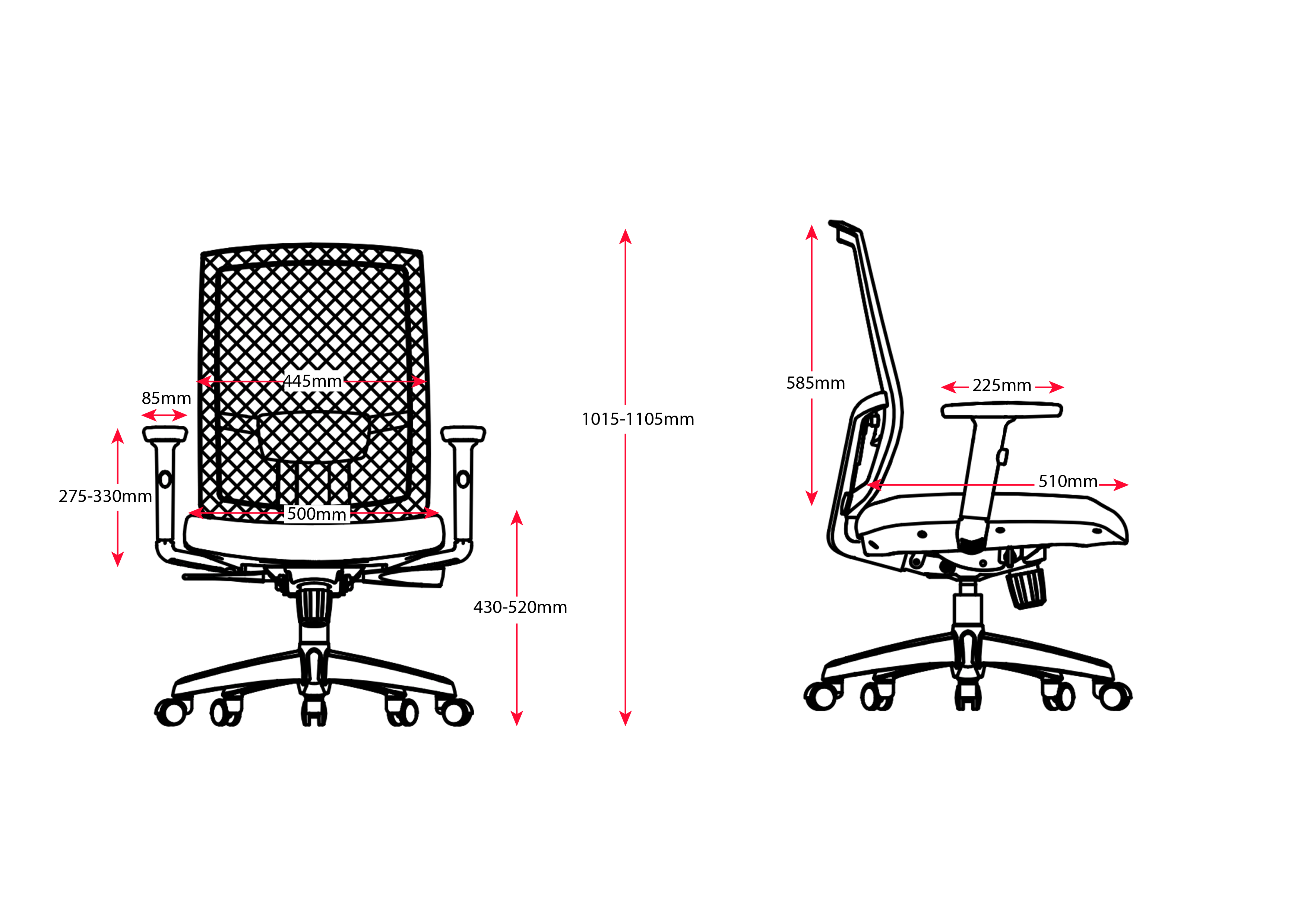 - The dimensions of this chair are - back height as 490mm, seat depth as 480mm, and seat width as 500 mm which is enough for any type of user.