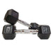 The storage rack is made from powder-coated steel and has a wider flat base for overall stability and safety. While the rubber hex dumbbells are a class-leading product supplied to some of Australia's largest fitness franchises. It uses a high-quality virgin rubber with cast iron heads bolted and encased into the rubber to prevent spinning.