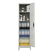 The single-door cabinet is made of cold-rolled steel, which provides stability, durability, and resistance over time. It has an opening door and 4 shelves for organizing and storing small and large items.