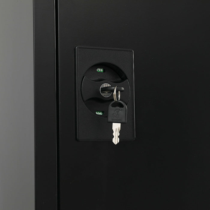 This metal locker has a compact and lockable design, ideal to keep anything out of sight in the home or office.