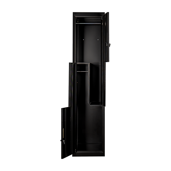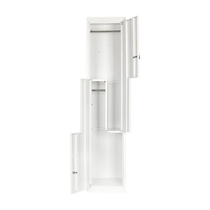 Our L-shaped, two-door vertical locker is a specially designed space-saving solution that provides the functionality for clothes and items storage, for 2 users. It's the ideal solution for personal use in the home or an apartment; or stack several units together for business needs like in schools, gyms, or work areas.