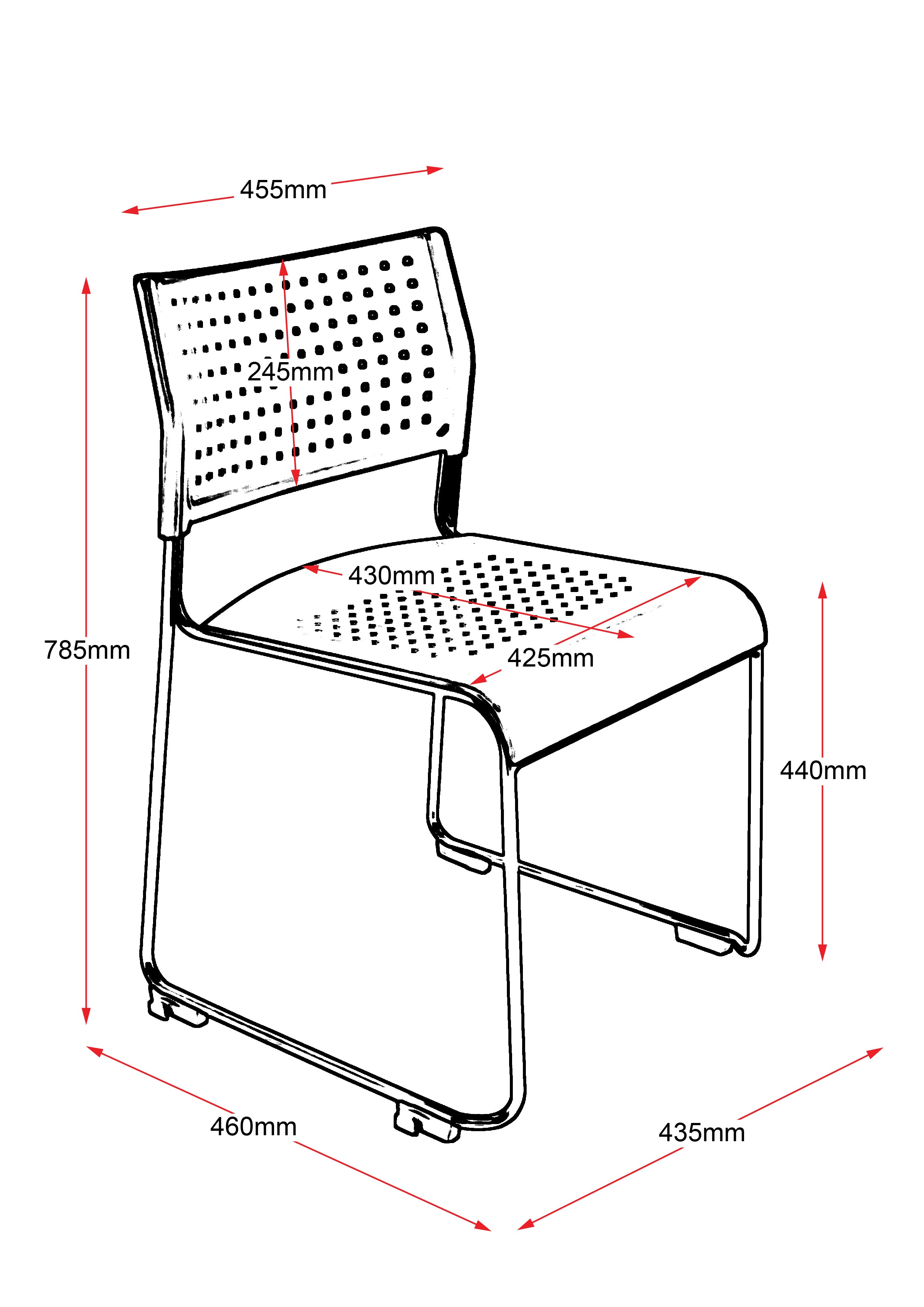 - This versatile chair has a back height of 245mm, along with a seat height of 445mm and a seat width of 425mm. The depth of the seat is 430mm